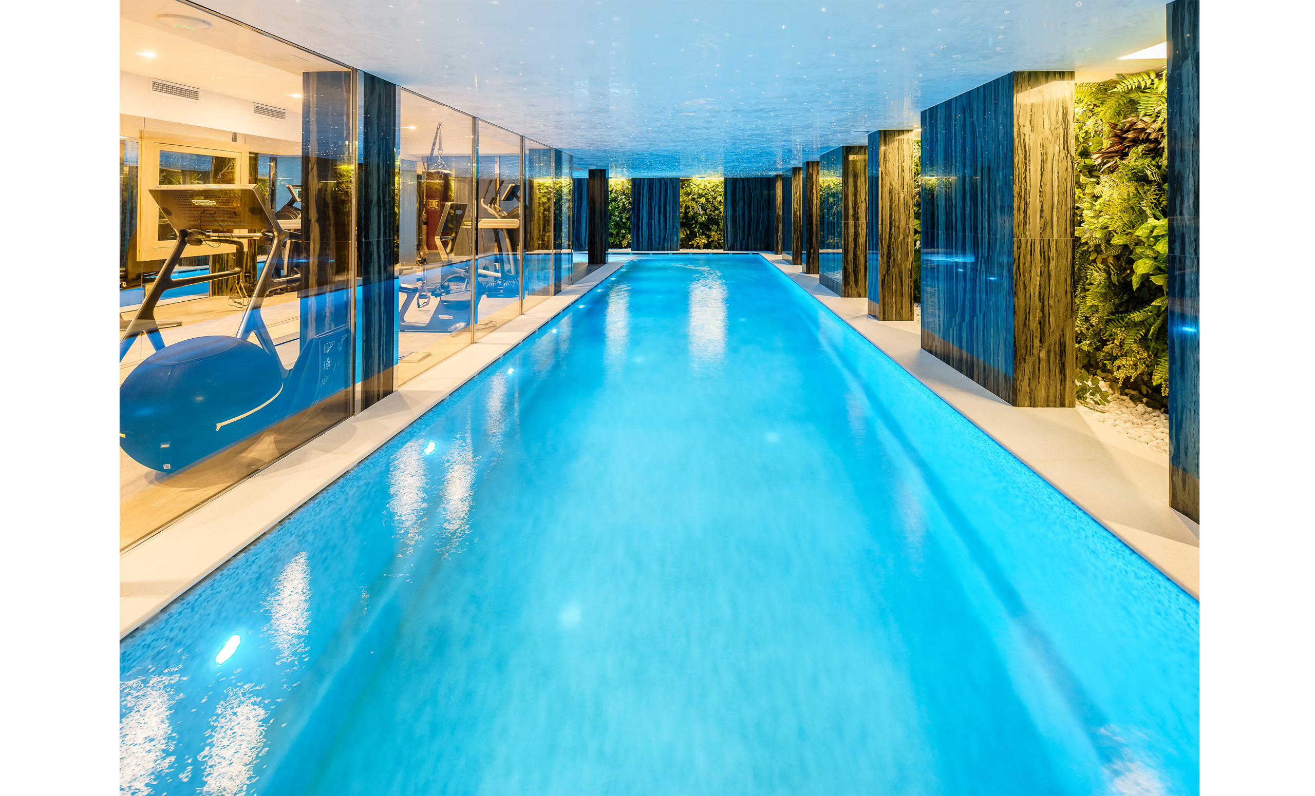 Ha giardino, giardino arredato, barbecue, camino, mini bar, cassaforte, accesso internet (wifi), asciugacapelli, balconi, zona infantile, palestra, allarme, vasca idromassaggio, spa, riscaldamento centralizzato, piscina privata, piscina climatizzata privata, parcheggio coperto in in struttura, 9 Televisori, tv satellitare, radio, Dvd.